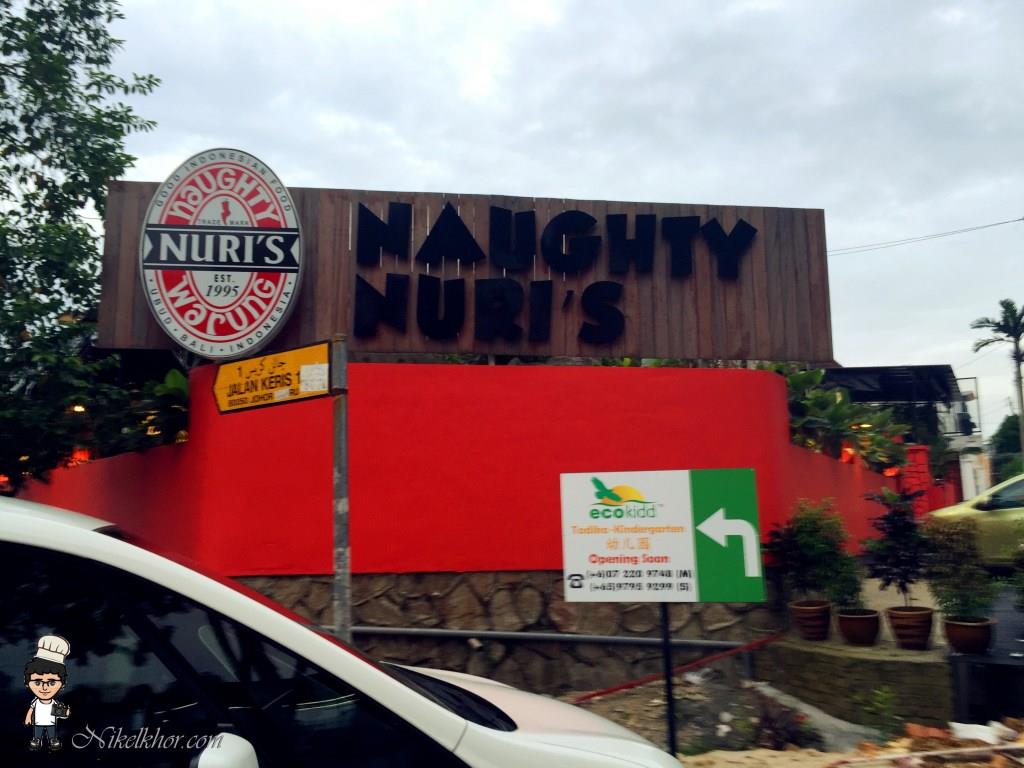 这家Naughty Nuri's Warung 坐落在Jalan Serampang 的第一个角落单位,在从大路转入 Jalan Serampang 后便可轻易被看见。餐厅的外墙是鲜红色,很轻易的能引起路人的注意。